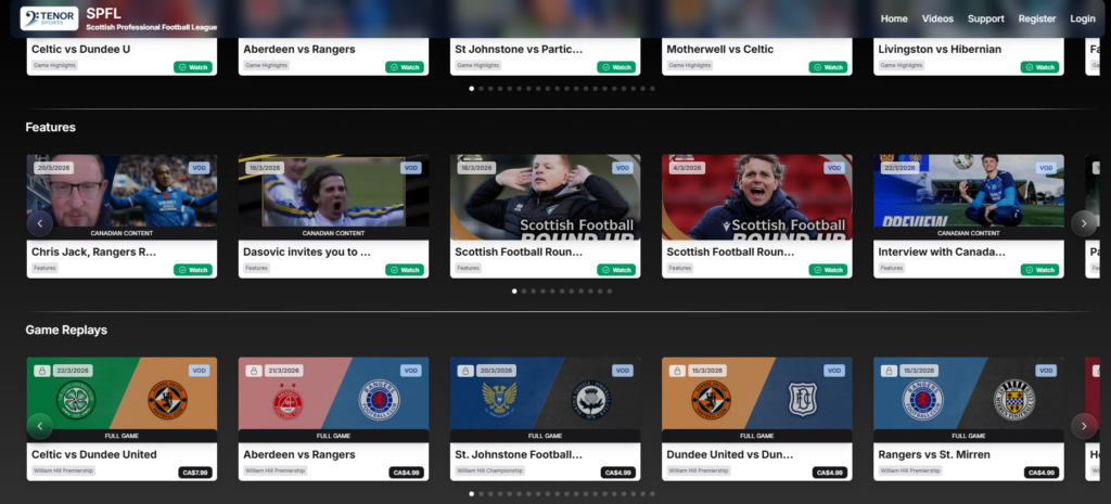 Our current focus is the Scottish Professional Football League (SPFL) in Canada, where we provide access to select fixtures through ScottishSoccer.ca, along with flexible viewing options including single matches, multi-game packs, and season passes.